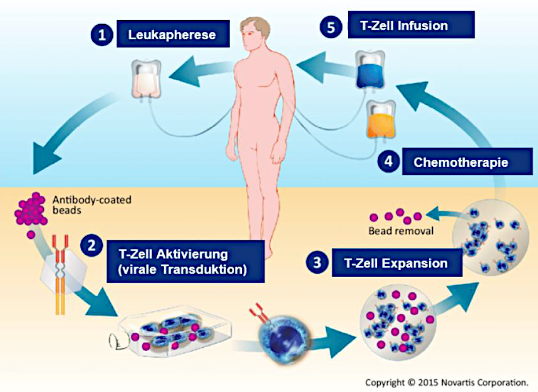 Die veränderten Zellen werden im spezialisiertem Labor stark vermehrt und umfassend getestet. Erst nach erfolgreicher Qualitätskontrolle werden sie an das Inselspital zurückgeschickt. Dieser Prozess dauert drei bis acht Wochen. Um das Fortschreiten der Erkrankung in dieser Zeit zu verhindern, kann eine Überbrückungstherapie notwendig sein.